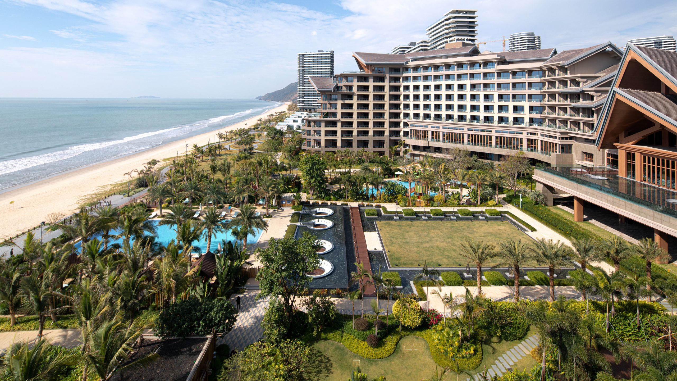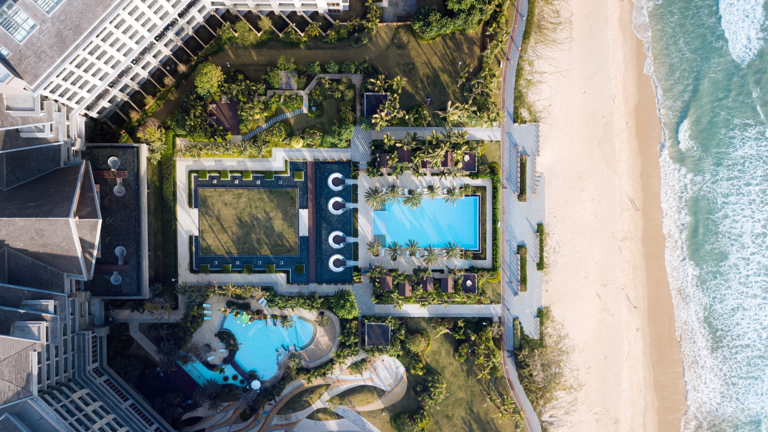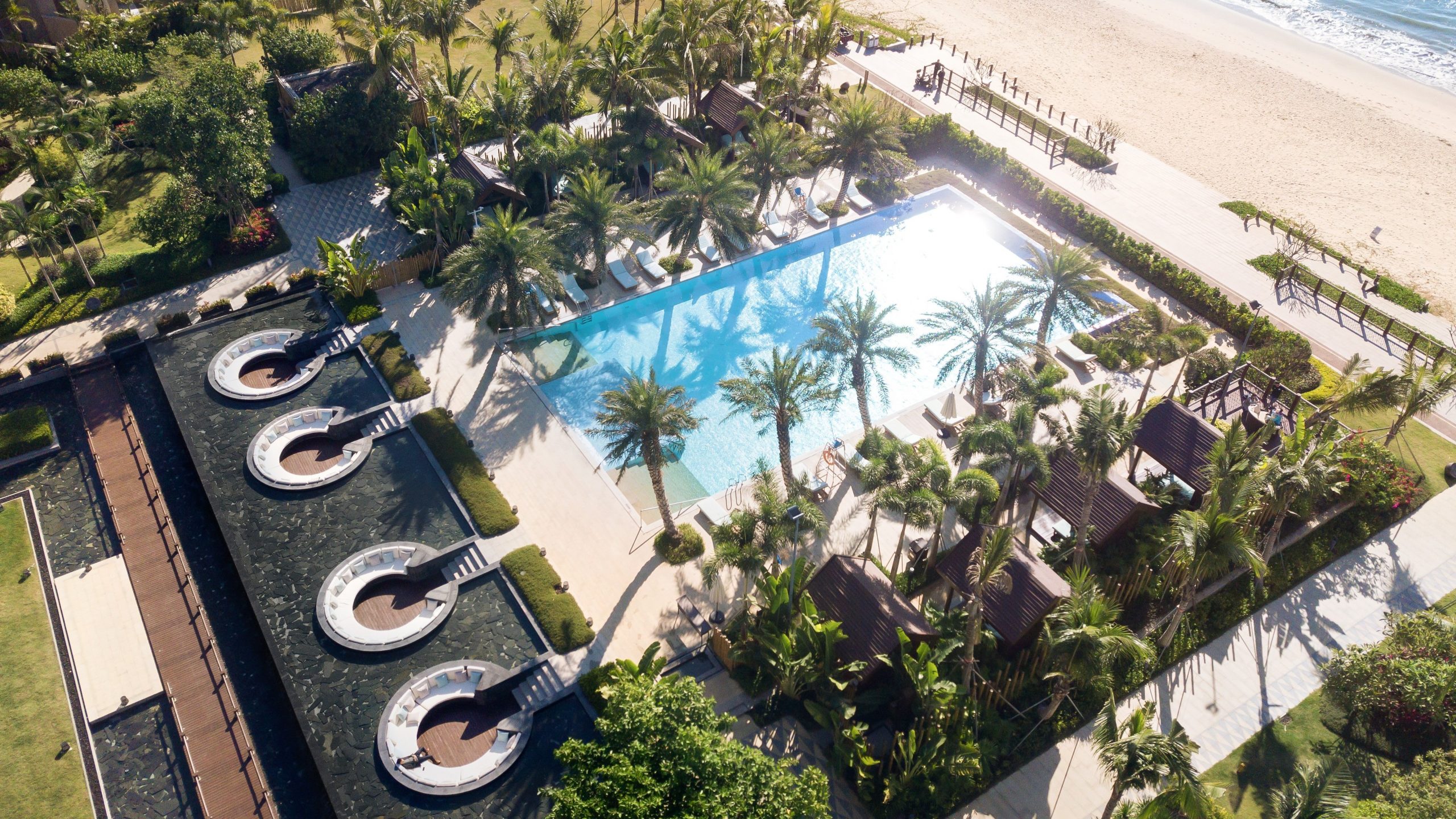 The landscape of DoubleTree by Hilton Shanwei captures the spirit of a family retreat. Formal elements of grandeur are balanced with a series of intimate sunken lounges set within lush tropical planting. Terraced landscapes create a dramatic sense of arrival, drawing guests towards the sea and opening views to the horizon, where the resort dissolves into its natural setting.
