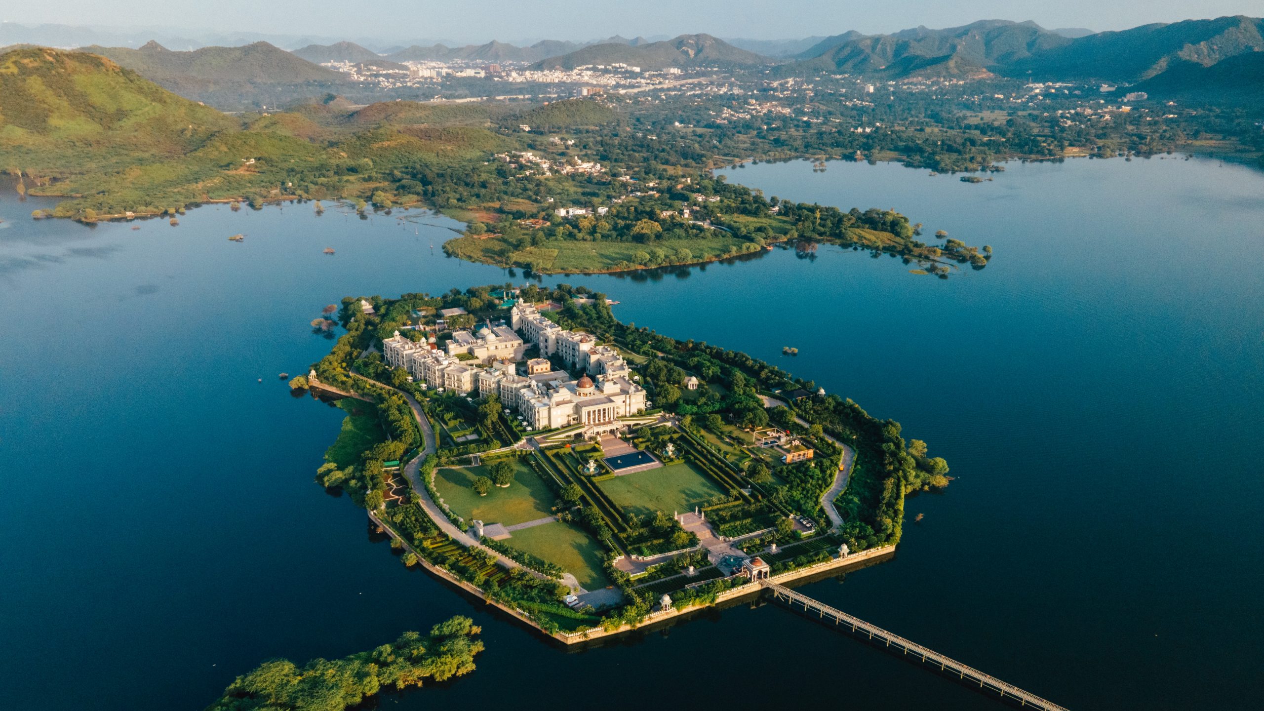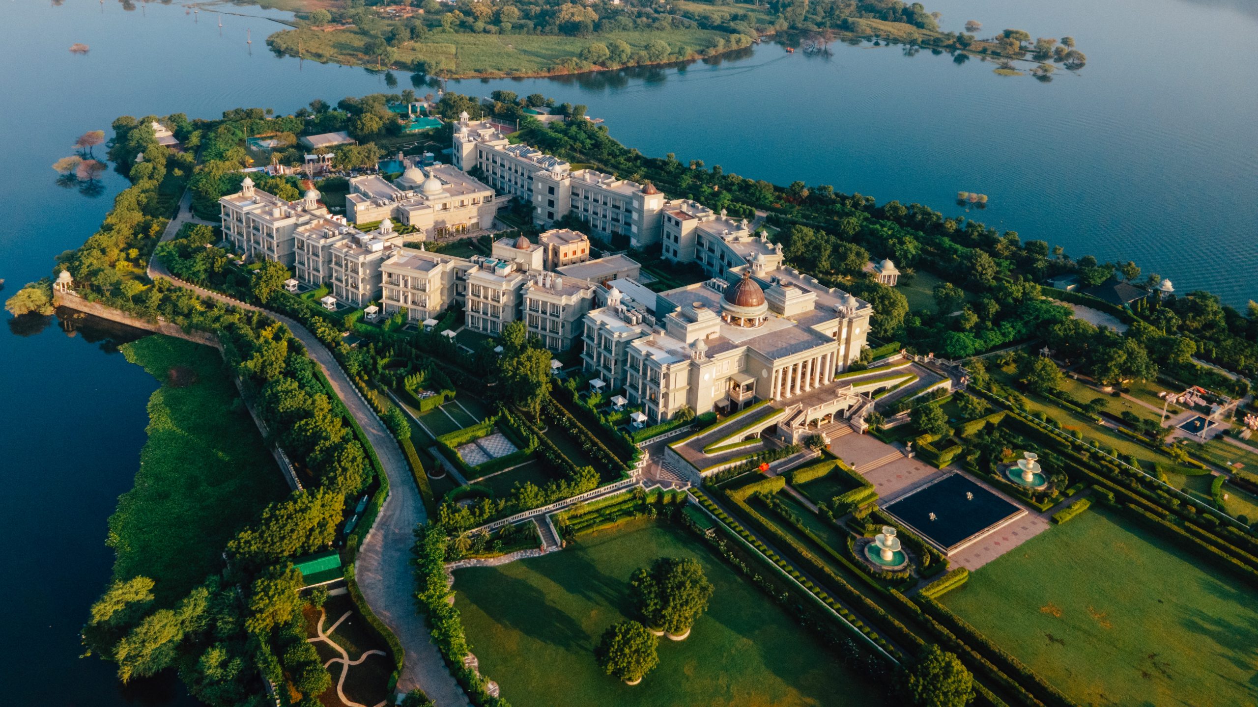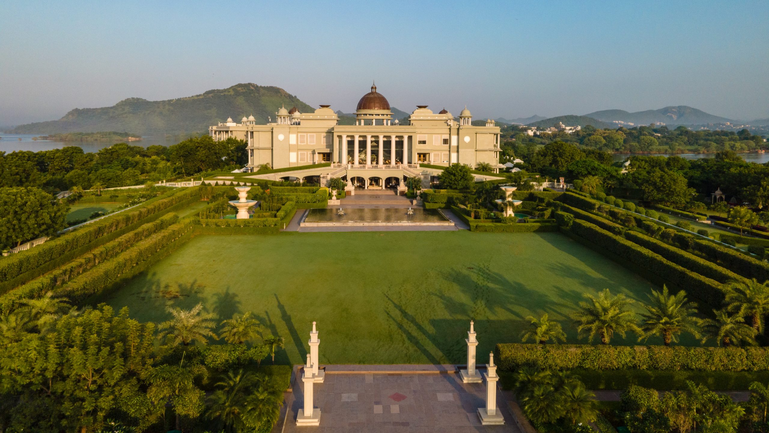 The landscape of Raffles Udaipur is a celebration of char bagh inspired garden design on a grand scale, blending traditional Indian heritage with European elegance. The expansive hotel gardens, designed on a dramatic 10-hectare island within Udai Sagar Lake combine formal Baroque geometry and ornamentation with Rajput-Mugal elements such as chhatris and Mewari jalis. From formal wedding banquets to romantic topiary and orchard garden walks, the landscape design provides guests with an extensive, varied and artfully curated range of recreation, sport, F&B and wellness experiences.