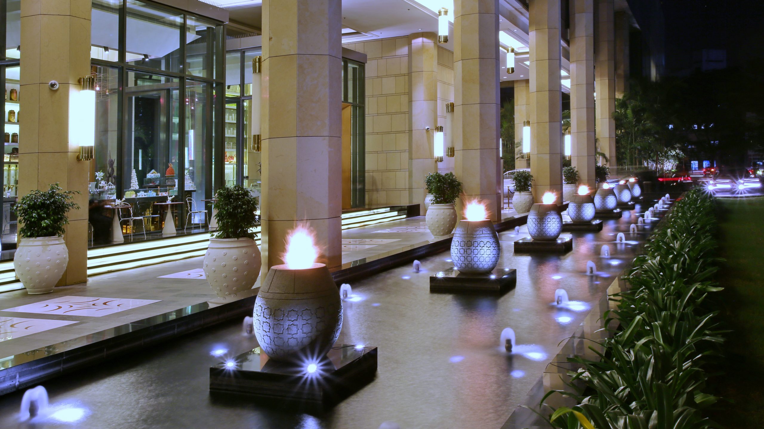 Located in the heart of downtown Bangalore’s tech hub, The Ritz-Carlton, Bangalore is the first Ritz-Carlton hotel in India. The lush tropical planting, clipped hedges, and contemporary pool offer guests a respite from city life, while water features incorporate indigenous motifs, grounding the design in local culture. The soft greenery provides a calming contrast to the hotel’s bold architecture, fostering a sophisticated yet relaxed environment. Centrally situated near key attractions and business districts, the hotel offers a unique fusion of luxury, nature, and cultural heritage within a bustling metropolitan setting.